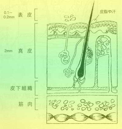 ここでも皮脂は重要な役割を果たしています。表皮(0.2mmの世界)は、たくましく忍耐力もあり、切傷や打ち身からもたちまち立ち直ります。